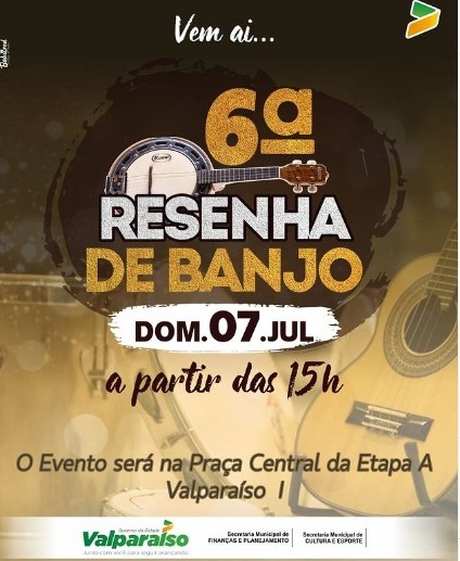 O evento ocorre no dia 07 de julho, domingo, a partir das 15h, na Praça Central da Etapa A, e traz homenagem ao samba e pagode dos anos 80 e 90. Valparaíso de Goiás também tem pagode de qualidade. Aos amantes do ritmo musical, a Secretaria de Cultura e Esporte (SMCE) com apoio da Secretaria de Finanças e Planejamento promove a 6ª Edição do Resenha de Banjo. O evento ocorre no dia 07 de julho, domingo, a partir das 15h, na Praça Central da Etapa A, e terá uma homenagem ao samba e pagode dos anos 80 e 90, com a participação de diversas bandas e grupos musicais, que vão sendo confirmados em breve. Leve a sua família e participe de uma animada roda de samba. A entrada é gratuita. A última edição do Resenha de Banjo ocorreu em janeiro de 2023 e atraiu centenas de pessoas na praça e foi considerado um sucesso. SERVIÇO: 6ª Edição do Resenha de Banjo Tema: Samba e Pagode anos 80 e 90 Dia 07 de Julho 2024 A partir das 15h Praça Central da Etapa A (Valparaizo I) SECOM/PMVG