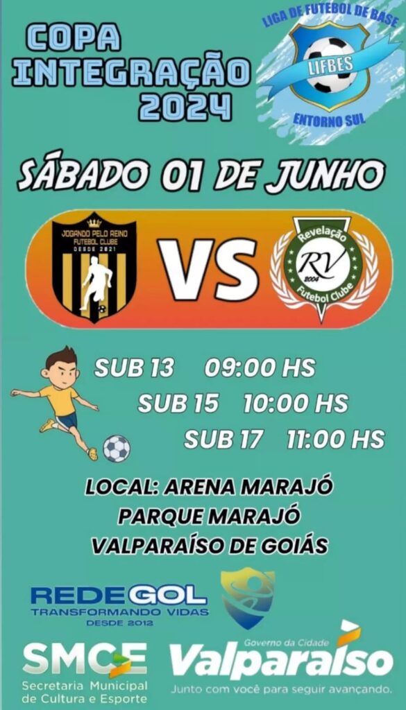 O torneio visa promover o esporte na comunidade, incentivar a prática esportiva entre os jovens, descobrir novos talentos. O Governo de Valparaíso, por meio da Secretaria de Cultura e Esporte, em parceria com a Rede Gol, sediará a Liga de Futebol de Base Entorno Sul (LIFBES) neste sábado, 1º de junho, na Arena Marajó, localizada no parque Marajó. As equipes, jogando pelo Reino e Revelação, disputarão partidas em três categorias diferentes. A primeira, Sub-13, começará às 9h00, marcando o início do torneio. Às 10h00, será a vez do Sub-15 entrar em campo. O Sub-17 jogará às 11h00, encerrando o evento do dia. O torneio visa promover o esporte na comunidade, incentivar a prática esportiva entre os jovens, descobrir novos talentos e fortalecer o espírito de equipe. A participação da comunidade local é fundamental. Familiares, amigos e torcedores estão convidados a apoiar os jovens atletas. O governo de Valparaíso tem demonstrado um forte compromisso com o incentivo ao esporte, especialmente o futebol. Investimentos em infraestruturas tal como o campo sintético do Céu Azul e eventos como a LIFBES refletem a dedicação. “O futebol é a paixão do povo. Em Valparaíso, a nossa gestão acredita no esporte como ferramenta de transformação, garantindo alegria, lazer e momentos de socialização entre os cidadãos. Por isso, nuca faltará apoio e investimento”, afirma o prefeito Pábio Mossoró. SECOM/PMVG