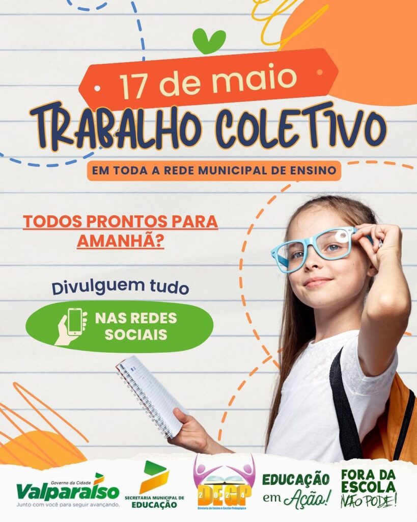 Mais do que uma simples pausa nas aulas, essa iniciativa representa uma abordagem inovadora para aprimorar a qualidade do ensino. O Governo de Valparaíso em conjunto com a sua Secretaria de Educação, promove “O Dia de Trabalho Coletivo”, que marca uma conquista significativa no calendário escolar de 2024, em toda a rede municipal de ensino. Destinado a permitir que as equipes escolares se concentrem em atividades diferenciadas e adaptadas às necessidades da escola como um todo, é uma oportunidade valiosa. Mais do que uma simples pausa nas aulas, essa iniciativa representa uma abordagem inovadora para aprimorar a qualidade do ensino. Apesar de não ser considerado um dia letivo, os profissionais da educação têm a liberdade de se dedicarem a projetos e colaborações fora das salas de aula habituais. Os alunos, por sua vez, estão dispensados neste dia, sem impacto negativo no cumprimento do número de horas letivas anuais. SECOM/PMVG