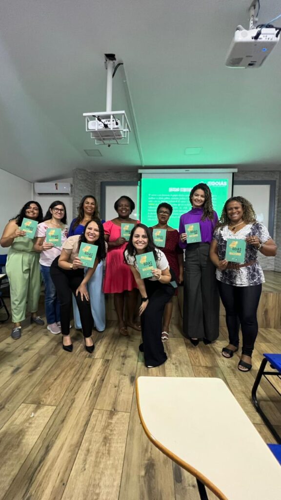 Em pauta, práticas antirracistas para trabalhadores da Educação e da Assistência Social. Nesta quarta-feira, 18, representantes do Conselho Municipal de Promoção da Igualdade Racial (COMPIR) de Valparaíso de Goiás, participaram da capacitação “Cartilha Goiás Sem Racismo”, promovida pela Superintendência Estadual de Promoção da Igualdade Racial, no município de Senador Canedo (GO). A Cartilha aborda sobre práticas antirracistas para trabalhadores da Educação e da Assistência Social. O conteúdo será trabalhado em salas de aula do Ensino Fundamental e Médio. O material contém informações sobre legislação, atividades e noções de combate ao preconceito racial, reforçando o tema antirracista, que já é ensinado nas escolas públicas estaduais. “Em breve teremos aqui em nosso município a apresentação da Cartilha Goiás Sem Racismo, para toda comunidade escolar, secretarias governamentais e população em geral”, afirma a presidente do COMPIR Valparaíso, Mariângela de Mendonça. O evento foi conduzido pelas representantes da Secretaria de Estado de Desenvolvimento Social de Goiás (SEDS-GO), Evelyn Geordana e Larissa. Ações como esta afirmam a política de Igualdade Racial, enfatizando as condutas e as práticas pedagógicas e institucionais antirracistas, no âmbito dos Estados e Municípios. 1/3