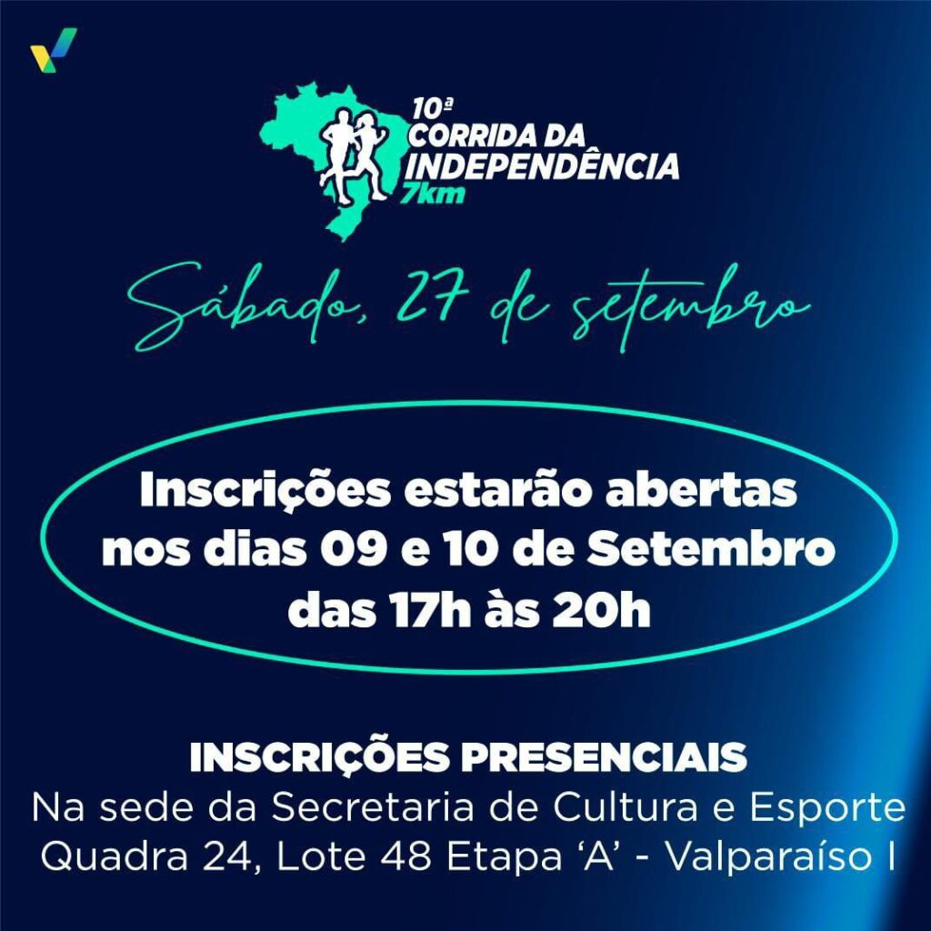 INSCRIÇÕES ABERTAS PARA A 10ª CORRIDA DA INDEPENDÊNCIA DE VALPARAÍSO DE GOIÁS
