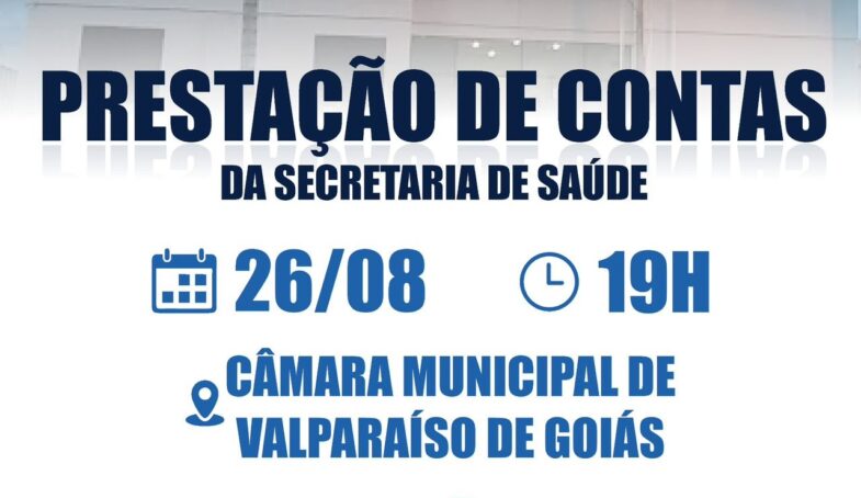 Publicado em 26/08/2025 A Secretaria Municipal de Saúde de Valparaíso de Goiás realizará, nesta terça-feira, 26 de agosto, às 19h, na Câmara Municipal, a prestação de contas referente ao último quadrimestre. A audiência atende ao que determina a Lei Complementar nº 141/2012, que estabelece a obrigatoriedade da apresentação pública do Relatório Anual de Gestão (RAG) e das ações desenvolvidas pelo gestor de saúde a cada quadrimestre. 1/1