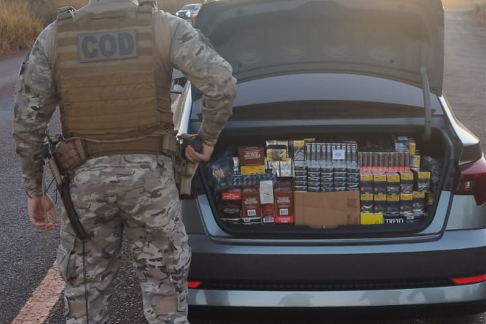 Motorista foi multado e teve que pagar ICMS. Total de encargos chega a R$ 20 mil Militares do Comando de Operações de Divisas (COD) apreenderam, nesta sexta-feira (14/6), 7,5 mil maços de cigarro sem nota fiscal. A carga foi detectada após abordagem a um veículo durante operação no Sul Goiano. O município onde a ação ocorreu não foi revelado. De acordo com a corporação, o carro estava repleto de cigarros de marcas nacionais e outros produtos de tabacaria. Todos os itens estavam sem documentação que comprovasse a origem lícita dos produtos. O motorista, 46, foi encaminhado junto com o material para o Posto Fiscal da Secretaria de Economia em Itumbiara, onde foi cobrado em R$ 20 mil por multa e Imposto sobre Circulação de Mercadorias e Serviços (ICMS). O prejuízo estimado pelo COD para a ação criminosa foi de R$ 52 mil.
