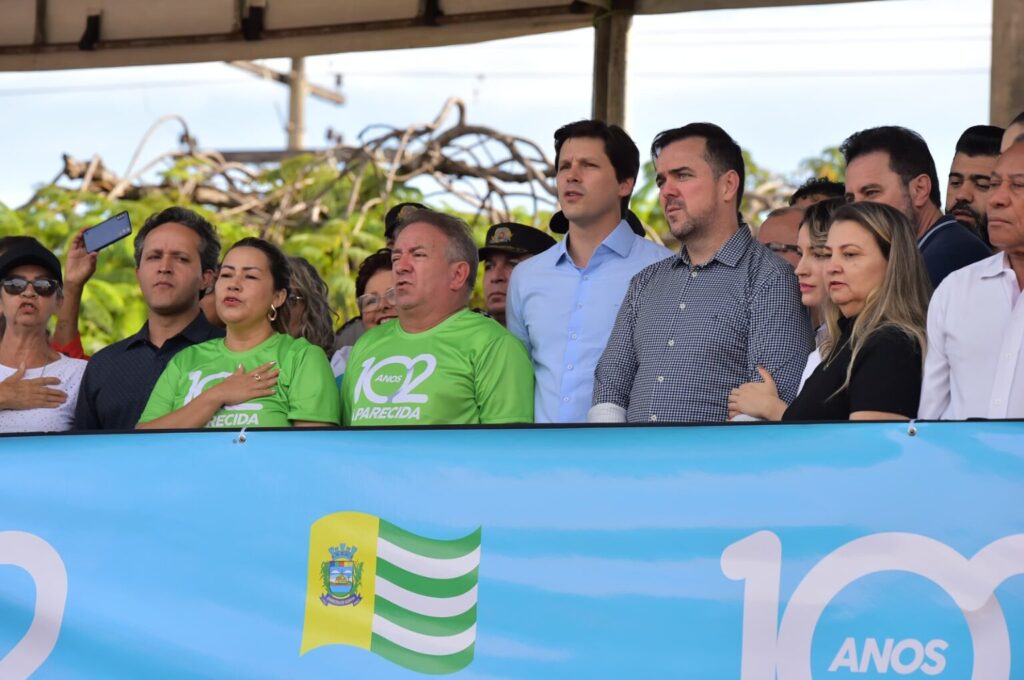 Segunda maior do estado de Goiás reuniu lideranças políticas para celebrar as transformações por que passa o município Segunda maior cidade do estado de Goiás, Aparecida de Goiânia comemora os seus 102 anos neste sábado, 11 de maio. A comemoração contou com desfile cívico na Avenida Independência, Setor Serra Dourada III, além de um bolo de 102 metros em alusão a idade do município. O prefeito Vilmar Mariano (UB) – pré-candidato à reeleição – esteve acompanhando de boa parte dos principais atores envolvidos no pleito de outubro próximo: o vice-governador Daniel Vilela (MDB) e Gustavo Mendanha (MDB), além de vereadores, deputados e líderes partidários. “É uma alegria comemorar os 102 anos de Aparecida ao lado de pessoas que fizeram a diferença para a história da nossa cidade. É uma sequência de gestões que mudaram o status de cidade problema para cidade solução”, afirmou. O desfile contou com a participação da orquestra sinfônica de Aparecida, da Banda da Polícia Militar, banda do Comando de Operações Especiais do Exército, Corpo de Bombeiros, apresentação de catira, capoeira, das escolas municipais e estaduais de Aparecida e outras atrações que mostraram um resumo da história centenária do município. Daniel Vilela representou também o governador Ronaldo Caiado e pontuou os investimentos do governo estadual no município. “Aparecida se transformou ao longo do tempo. Um exemplo é o novo polo industrial que deve trazer mais de 300 empresas e gerar aproximadamente 30 mil novos empregos”, declarou, ao lembrar dos dois mandatos de seu pai, Maguito Vilela, como prefeito de Aparecida. O ex-prefeito de Aparecida de Goiânia Gustavo Mendanha parabenizou o município pela história. “Hoje Aparecida atrai pessoas de todo o país que a reconhecem como uma cidade boa para se morar, para empreender e viver”, afirmou. O deputado estadual Veter Martins (PRD) tem sua base eleitoral em Aparecida de Goiânia e também marcou presença. “Esta é uma cidade que acolhe pessoas do país inteiro e dá condições para que eles prosperem aqui”, afirmou. Representando a Câmara Municipal, o vereador Hans Miller (MDB) enfatizou a cooperação entre executivo e legislativo em Aparecida. “Somos 25 vereadores trabalhando para que a cidade desponte como um município cada vez mais forte”, afirmou. História A história de Aparecida começou em 11 de maio de 1922. Naquela data, famílias de precursores da cidade rezaram uma missa campal onde foi construída, depois, a capela da padroeira do arraial – atualmente Paróquia e Santuário Nossa Senhora Aparecida. Entre os vários colaboradores daquele primórdio estão Aristide Frutuoso, Antônio Lourenço Ribeiro, Antônio Alves Fortes, Antônio Bertoldo Ribeiro, Elias Gonçalves Primo, Manuel Cabral da Silva, Joaquim Marques da Silva e Benedito Batista de Toledo, entre outros. Em 26 de dezembro de 1958, foi criado o Distrito de Goialândia, reconhecendo esta então pequena comunidade por meio da Lei n° 1.406. E em 14 de novembro de 1963, através do projeto de Lei nº 784/63, a Assembleia Legislativa de Goiás sancionou a Lei nº 4.927, criando, assim, o município de Aparecida de Goiânia. Participaram da cerimônia os deputados federais Jeferson Rodrigues (Republicanos) e Silvye Alves (UB), a deputada estadual Bia de Lima (PT), o ex-deputado federal Leandro Vilela (MDB), os vereadores Erivelton Contador (UB), Arnaldo Leite (MDB), Amendoim (UB), Camila Rosa (UB), Isaac Martins (UB), Roberto Chaveiro (Podemos), Aldivo Araújo (UB) e William Panda (PCdoB), além de secretários municipais e de lideranças do município.