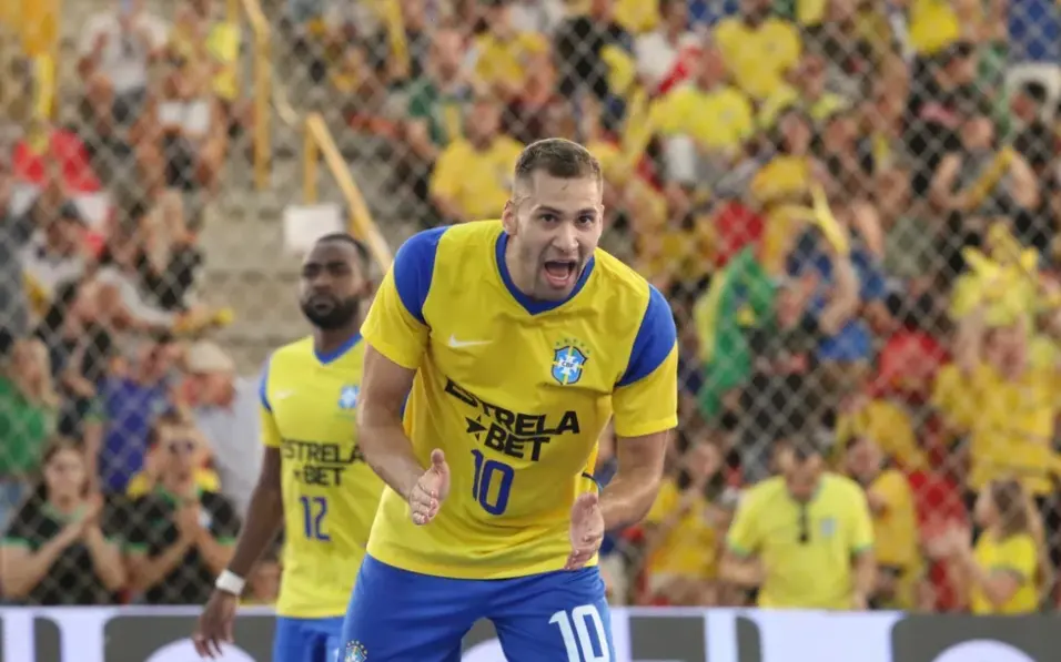 Na estreia do torneio, os brasileiros bateram o Irã por 4 a 2, com tranquilidade, na Arena Sorocaba, em São Paulo O Brasil bateu o Irã por 4 a 2 e conquistou a Copa do Mundo de Futsal 2023, na Arena Sorocana, em São Paulo, na manhã deste domingo (17). Pito, Diego, Rafa e Matheus marcaram os gols da Seleção. Além da equipe brasileira, Japão, Arábia Saudita, Irã, Paraguai e Colômbia participaram da competição. PRIMEIRO TEMPO O início do primeiro período foi cheio de faltas e marcado por trocas de oportunidades. Mesmo a equipe adversária não oferecendo muito perigo, O Brasil aproveitou momentos e a equipe não se fechou na retranca e tentou se sair melhor nas oportunidades que surgiram de faltas e contra-ataques rápidos. Com um jogo mais fechado, uma presença de toques de bola próximos e pressão constante entre Mtheus e Marlon, resultou no gol de Pito. Em seguida, o país do Oriente Médio igualou, no entanto, Diego marcou em seguida, fechando em 2 a 1. + Duda e Ana Patrícia são as campeãs do Circuito Brasileiro de Vôlei de Praia 2023 SEGUNDO TEMPO O Irã abriu o segundo tempo diferente, menos tímido e um jogo mais solto, pressionando o Brasil e garantindo uma maior posse de boal, o que dificultou na progressão para o ataque. No entanto, não demorou muito para Matheus e Rafa ampliarem o placar. +Bruna Takahashi mira vaga em Paris através dos Jogos Pan-Americanos: ‘Gostaria de conquistar o ouro’ A Seleção conquista o título com 100% de aproveitamento, após vencer o Japão – 2 a 0 – e Arábia Saudita – 3 a 0 – durante a fase de grupos.