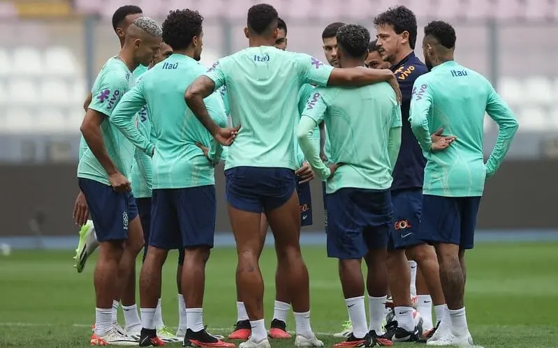 Última atividade antes da partida contra os peruanos foi no estádio Nacional, palco da partida pelas Eliminatórias DA REDAÇÃO DO LANCE! – SP• Lima (PER) O técnico Fernando Diniz deve repetir a escalação da goleada da Seleção Brasileira por 5 a 1 sobre a Bolívia, na sexta-feira (9), pela primeira rodada das eliminatórias para a Copa do Mundo de 2026. O Brasil volta a campo nesta terça-feira, às 23h (de Brasília), contra o Peru, no estádio Nacional de Lima, capital peruana. O palco do jogo também foi o da última atividade da Canarinho, nesta segunda-feira (11). O zagueiro Gabriel Magalhães, que sentiu um desconforto na coxa direita durante o triunfo sobre os bolivianos, não teve lesão diagnosticada e nem sente mais dores. Ele participou normalmente não só do treino deste fim de tarde, como do trabalho feito no domingo (10), no estádio do Alianza Lima. A imprensa pode acompanhar boa parte do treinamento, realizado na capital peruana. A exceção foi a primeira meia-hora da atividade, onde Diniz deu foco para as bolas paradas tanto ofensivas, quanto defensivas. O segundo momento, já com a presença dos jornalistas, teve atividade tática e de cobrança de escanteios. RICHARLISON O jogador chorou ao ser substituído na vitória brasileira sobre a Bolívia. Vivendo uma fase ruim na carreira, tendo marcado somente três gols durante toda a temporada passada, pelo Tottenham, da Inglaterra, o centroavante será mantido entre os titulares contra os peruanos. Pelo Brasil, o jogador não marca há quatro partidas. A última vez foi em dezembro do ano passado, contra a Coreia do Sul, pelas oitavas de final da Copa do Mundo. Mesmo após choro contra a Bolívia, Richarlison deve ser titular contra o Peru (Foto: Vitor Silva/CBF) – Ele (Richarlison) senta do nosso lado e conversamos muito. Já vemos ele mais leve e tranquilo em relação ao fim do jogo. Fazer gol é importante para o atacante, mas ele desempenhou seu papel com movimentação, pressão, posicionamento. Faltou o gol para coroar a ótima atuação em Belém, mas com esse estilo de jogo e filosofia do Diniz, muitas oportunidades virão. Tivemos muita posse e chances criadas em Belém. Passamos tranquilidade e que o gol vai sair, não pode estar desesperado para fazer o gol. Precisa estar tranquilo para marcar, e nós conversamos muito. Queremos ver todos bem. Não podemos estar todos felizes e um companheiro insatisfeito, que não está feliz. Estamos buscando a todos por esse ambiente. Eliminatórias, Copa. É meu terceiro ciclo e sei da importância de todos estarem bem. Nunca sabemos quem vai decidir, ajudar. Não vamos deixar um companheiro para trás, nunca – disse Marquinhos, que é um dos líderes da Seleção Brasileira, em entrevista coletiva nesta terça-feira (11). A provável escalação do Brasil para o jogo contra o Peru tem: Ederson; Danilo, Marquinhos, Gabriel Magalhães e Renan Lodi; Casemiro, Bruno Guimarães e Neymar; Raphinha, Richarlison e Rodrygo.