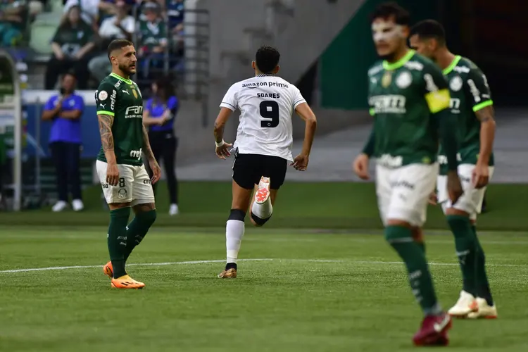 Raphael Veiga teve a grande chance de empatar para o Verdão, mas perdeu um pênalti já no segundo tempo PALMEIRAS CONTROLAVA O JOGO, MAS…Foram no máximo dois, três minutos, em que o Botafogo se lançou ao ataque e parecia controlar o Palmeiras. Rapidamente o Verdão tomou as rédeas da partida e empilhou boas chegadas ao ataque, a maioria passando diretamente pelo atacante Rony. Em duas, inclusive, Raphael Veiga estava em melhores condições e poderia ter finalizado melhor. A principal delas, no entanto, teve participação de ambos. Veiga fez um lindo lançamento em profundidade, Rony recebeu, invadiu a área e bateu cruzado para fora. O lance, no entanto, estava impedido. O Palestra rondou muito mais a área adversária do que o time carioca, mas precisava ter caprichado mais, e aí… …O FUTEBOL NÃO PERDOA ERROS, AMIGOAos 27 minutos, o Botafogo teve uma falta na intermediária ofensiva, Hugo levantou, Tiquinho Soares estava livre na altura do segundo pau e aproveitou que a bola foi mal afastada por Zé Rafael, para dar um corte seco no meia palmeirense e colocar no canto esquerdo do goleiro Weverton, abrindo o placar para o Glorioso. Foi o décimo gol do centroavante botafoguense, que é o artilheiro do Brasileirão. VAR TIRA O EMPATE DO PALMEIRASLogo após sofrer o gol, o Palmeiras buscou a resposta e quase chegou ao empate com Raphael Veiga. O meia palmeirense recebeu um cruzamento por baixo de Artur, vindo pelo lado direito, e a finalização obrigou o goleiro Lucas Perri a defender em dois tempos. Pouco depois, o Verdão conseguiu marcar, com o capitão Gustavo Gómez, que aproveitou um ótimo cruzamento de Richard Ríos para cabecear para o fundo da rede. No entanto, a arbitragem de vídeo, ao checar ao lance e traçar as linhas, detectou impedimento milimétrico do zagueiro palmeirense. Todo o momento de revisão foi mostrado nos telões do Allianz Parque. No fim do primeiro tempo, o Palmeiras teve mais uma grande chance, quando Artur finalizou forte e obrigou Lucas Perri a novamente fazer boa defesa. PALMEIRAS NÃO VOLTA TÃO INTENSO, E BOTAFOGO PERDE CHANCE INCRÍVEL Se esperava um Palmeiras colocando a mesma pressão do primeiro tempo, no segundo. No entanto, a equipe alviverde teve muitas dificuldades contra um sistema defensivo bem postado do Botafogo, que também fez o Palestra provar do próprio veneno: as transições ofensivas com muita velocidade. Quando Raphael Veiga cobrou um escanteio muito mal, Segovia disparou pela direita, serviu Eduardo, que colocou Victor Sá na cara de Weverton. O atacante botafoguense, no entanto, mandou para fora. VEIGA MANDA PARA FORA O QUE SERIA O EMPATE PALMEIRENSE Depois de sofrer o susto, o Palmeiras, que seguia tendo muitas dificuldades frente à defesa botafoguense, desperdiçou duas chances de perigo. Na primeira, Artur colocou na área, a bola passou por Rony, o quique enganou o goleiro Lucas Perri e passou tirando tinta da trave. Na segunda, Luís Guilherme, que saiu do banco de reservas, apertou a saída de bola. Mas a grande chance palmeirense de ter, pelo menos, empatado a partida foi quando Raphael Veiga mandou para fora uma cobrança de pênalti, que Flaco López, que também começou entre os reservas, sofreu. O meia palmeirense, que não fez uma boa partida, pegou torto na bola, em direção ao canto esquerdo, em que Lucas Perri pulou. + Veja tabela e classificação do Brasileirão clicando aqui FICHA TÉCNICAPALMEIRAS 0 X 1 BOTAFOGOCAMPEONATO BRASILEIRO – 12ª RODADALocal: Allianz Parque, São Paulo (SP)Data e hora: 25 de junho de 2023, às 20h (horário de Brasília)Árbitro: Anderson Daronco (FIFA/RS)Assistentes: Rafael da Silva (FIFA/RS) e Kleber Lucio Gil (SC)VAR: Rafael Traci (VAR-FIFA/SC)Público e renda: 38.877 pessoas / R$ 4.160.197,59Cartões amarelos: Abel Ferreira (Palmeiras); Tchê Tchê e Danilo Barbosa, Matheus Nascimento (Botafogo)Cartões vermelhos: – GOL: 0-1 Tiquinho Soares (27’/1T) PALMEIRASWeverton; Mayke (Endrick, 43’/2T), Gustavo Gómez, Luan e Piquerez; Zé Rafael, Richard Ríos (Flaco López, 11’/2T) e Raphel Veiga (Jhon Jhon, 43’/2T); Artur (Bruno Tabata, 26’/2T), Rony e Dudu (Luís Guilherme, 26’/2T). Técnico: Abel Ferreira. BOTAFOGOLucas Perri; Rafael (Di Plácido, 28’/2T), Adryelson, Victor Cuesta e Hugo; Marlon Freitas, Tchê Tchê (Danilo Barbosa, intervalo) e Eduardo; Junior Santos (Matías Segovia, intervalo), Tiquinho Soares (Matheus Nascimento, 38’/2T) e Victor Sá (Luis Henrique, 20’/2T). Técnico: Luis Castro.