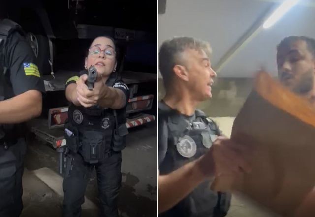 Vídeo mostra ação truculenta dos policiais antes de perceberem o erro. Polícia Civil diz que irá apurar ‘supostos abusos’ cometidos Policiais civis arrombaram o portão e invadiram a casa errada durante o cumprimento de um mandado de prisão em Aparecida de Goiânia, região metropolitana de Goiânia. A ação aconteceu nas primeiras horas da quinta-feira (11) e pegou uma família de surpresa. O vídeo que circula nas redes sociais mostra o momento em que uma policial aponta a arma para uma das moradoras, que questiona a presença deles no local. “Você acordou o meu filho de dois meses, minha filha de 9 anos está chorando”, diz a mulher enquanto está na mira da agente. Revoltada, ela manda a policial abaixar a arma, mas a agente ainda segura o seu braço e diz “você vai ficar aqui”. + Empresário é preso no Recife suspeito de estuprar e agredir mulheres Nesse momento, a moradora pede para o marido chamar um advogado. “Eu quero saber por que vocês fizeram isso com o meu portão, às 5h da manhã. Eu quero saber. Cadê o mandado?”, ela questiona. Em seguida, um dos agentes tira o papel e lê: “aqui, cumprimento de prisão preventiva de Jenifer Naiara”. + PM é amarrado em árvore após insistir em dançar com mulher Nervosa, a moradora questiona quem é a mulher e afirma: “Vocês erraram o endereço. Isso é grave. Eu quero a identificação de todos vocês, e ela (a policial) ainda meteu a mão no meu pescoço”. Nesse momento, os policiais se irritam com os questionamentos e o aumento no tom de voz dos moradores e chegam a exigir que eles “abaixem a voz”. Um dos agentes, inclusive, tenta retirar o celular da mão da moradora quando ela pega no papel do mandado, questionando se é para a casa 1 ou 2. A gravação é interrompida logo depois. + Desaparecimento de armas da GCM: 3 agentes são afastados de base em Cajamar (SP) Em nota, a Polícia Civil de Goiás (PCGO) informa que os “mandados de prisão e busca e apreensão foram cumpridos dentro da legalidade“, e que “eventuais supostos abusos” cometidos durante a operação já estão sendo investigados pela Superintendência de Correições e Disciplina da PCGO.