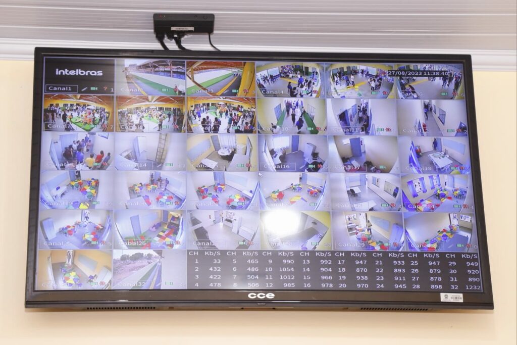 Neste último fim de semana, durante a cerimônia de entrega de reforma e ampliação geral do CMEI Pró-Saber, foi inaugurada a sala composta por um grande televisor que transmite em tempo real o que acontece em 47 diferentes pontos da escola. O Governo Municipal de Valparaíso de Goiás tem se tornado referência no Entorno na área da segurança pública. Neste último fim de semana, durante a cerimônia de entrega de reforma e ampliação geral do CMEI Pró-Saber, que fica localizado na Vila dos Carneiros, foi inaugurada uma sala de videomonitoramento composta por um grande televisor que transmite em tempo real o que acontece em 47 diferentes pontos da escola, internamente e na parte externa. O novo ambiente é o primeiro da região de Valparaíso dentro de uma unidade de ensino, o que marca uma nova era a partir de agora. O trabalho é fruto de uma parceria entre a Secretaria de Educação de Valparaíso, a Guarda Municipal e as forças de segurança do Estado. “Com muita alegria que inauguramos essa sala de videomonitoramento, que funcionará 24h por dia, fazendo imagens em alta resolução. É uma sala moderna e trará mais segurança a todos os nossos servidores”, afirmou Pábio Mossoró. O assunto foi destaque neste início de semana, e na reunião mensal do GGI-M, o Superintendente da Agência Municipal e Guarda Municipal, Edmilson José destacou a importância de se investir em segurança dentro de escolas e em diversos pontos da cidade de Valparaíso de Goiás. “Nosso município vem reduzindo mês após mês os índices de violência em todas as áreas, temos números muito positivos e estamos entre as 10 cidades mais seguras para se viver dentro do estado de Goiás, graças ao fruto de um trabalho pesado contra o crime, conjunto da Guarda Municipal, Polícia Militar, Polícia Civil e todas as forças de segurança”, disse Edmilson. “Essa sala de videomonitoramento é sem dúvida o primeiro de muitos que iremos investir dentro das escolas, combatendo diversos crimes, principalmente de furtos de pessoas que invadem a unidade pulando os muros. Nosso projeto futuro é alcançar e filmar todo o comércio de rua e neutralizar os crimes”, finalizou. SECOM/PMVG