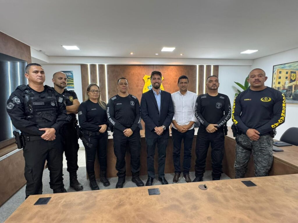 O prefeito Marcus Vinicius, acompanhado do secretário municipal de Infraestrutura, Waguinho do Céu Azul, esteve nesta terça-feira (07/10) na sede da Polícia Penal do Estado de Goiás, em Goiânia, para alinhar a ampliação do serviço de zeladoria urbana realizado em parceria com a instituição. A reunião contou com a presença do diretor-geral da Polícia Penal, Josimar Pires Nicolau.